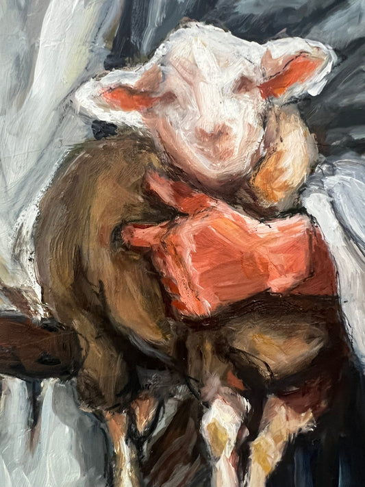 "He Gathers the Lambs in His Arms" 20x24 Oil on Board