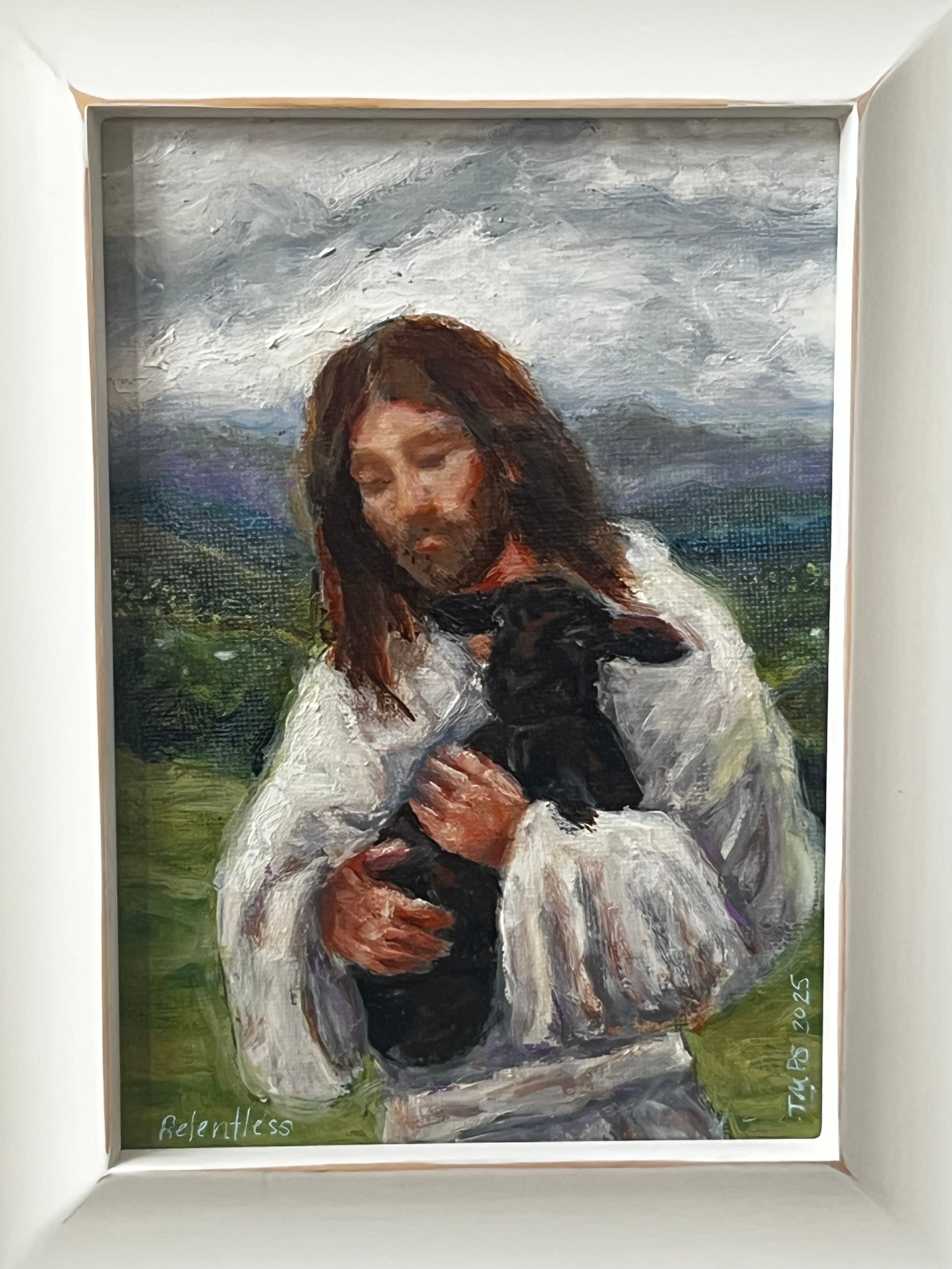 This measures 8.5x10.5 including the frame. It's oils painted onto canvas board in a refurbished frame. All hand-done by Tiffiny Shults. Could be purchased unframed for $125 or framed for $150.